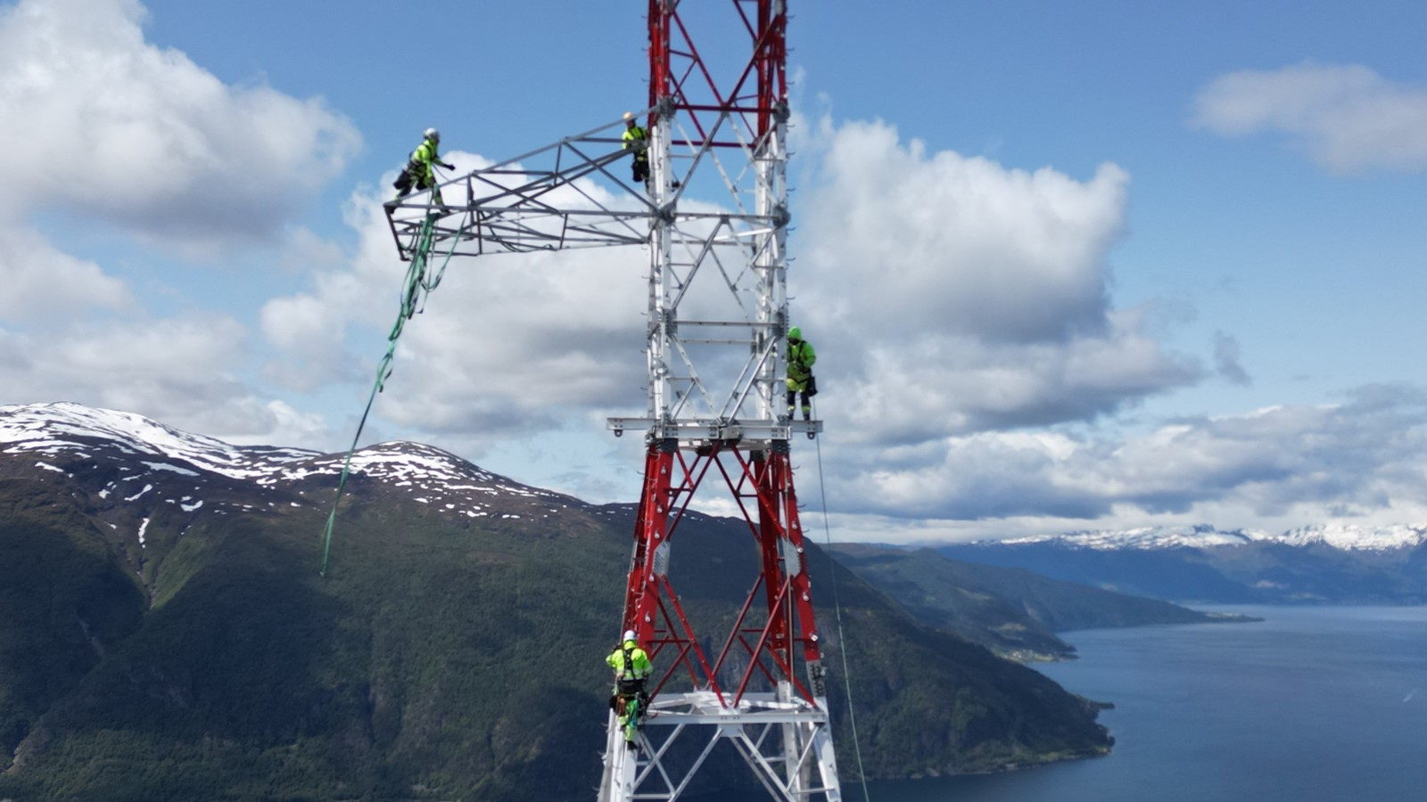is participating as the supplier of suspension and connection equipment. The most demanding phase – the installation of 50-metre-high towers for the conductor crossing over one of Norway’s largest fjords – is being successfully carried out thanks to the experience and expertise of our team, as well as the excellent coordination between the installation crews, pilots and load masters.
